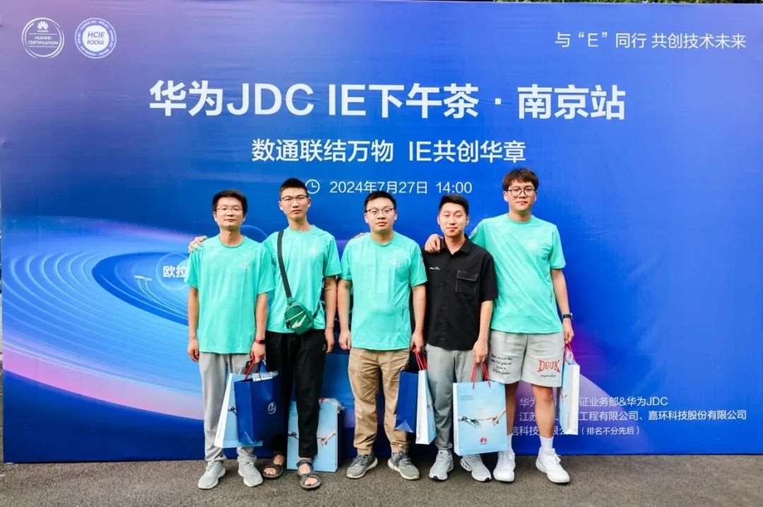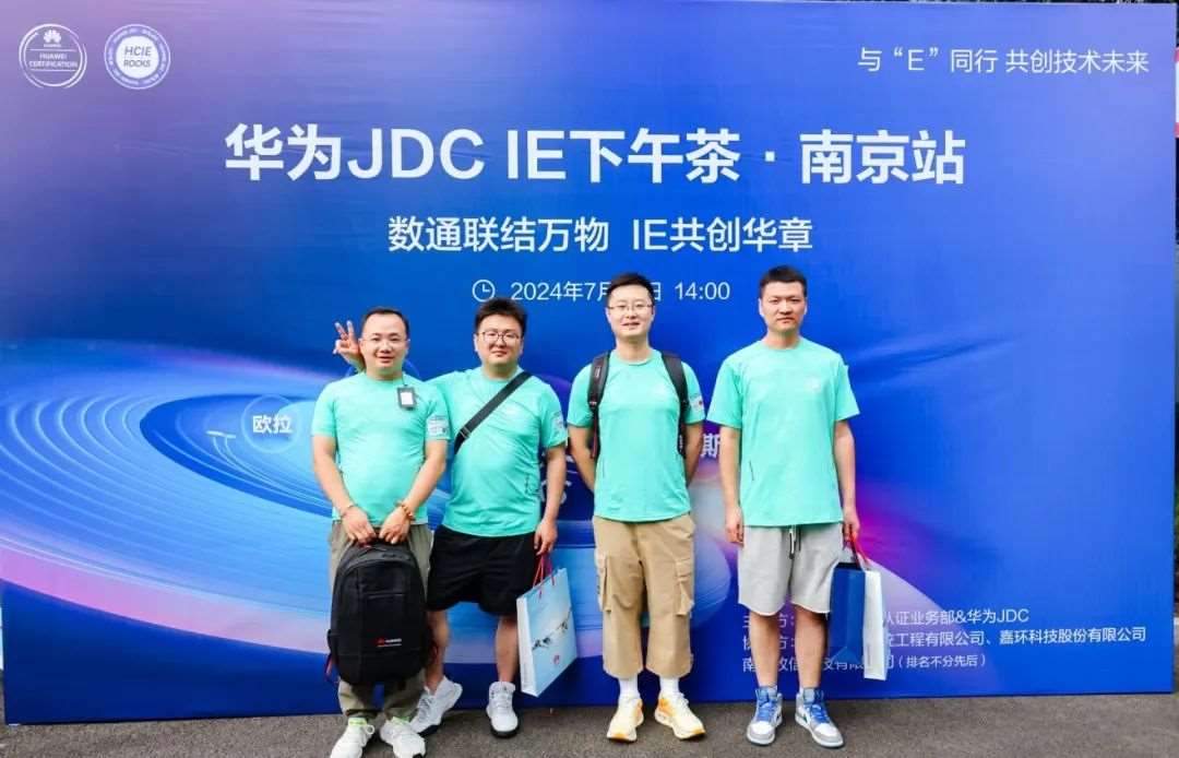 <中国,南京,2024年7月27日]华为培训与认证部、华为JDC社区以及华为数据通信产品线携手江苏万和系统工程有限公司、嘉环科技股份有限公司和南京牧信科技有限公司,在华为南京研究所成功举办“华为JDC IE下午茶”活动。本场活动汇聚了互联网、运营商、教育、金融等行业73位HCIE专家,围绕华为数据通信技术及未来职业发展等主题展开探讨,并参观了位于华为南京研究所内的“华为天工实验室”。