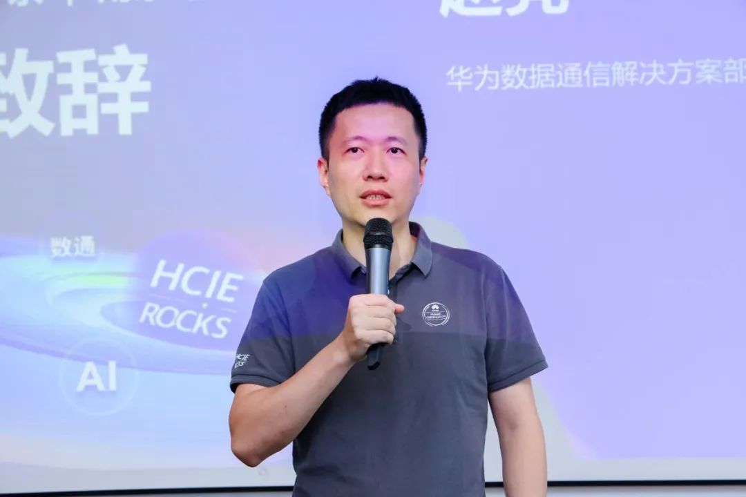 华为JDC IE下午茶南京站HCIE专家合影华为数据通信解决方案部人才生态总监赵亮为本次活动致开幕辞,他指出:“面对行业数智化转型的历史机遇,华为推出了星河AI网络方案,打造数智化时代的新网络基石,提升客户体验,促进行业发展。同时,通过华为职业认证等,共同培育网络人才,满足行业需求。”